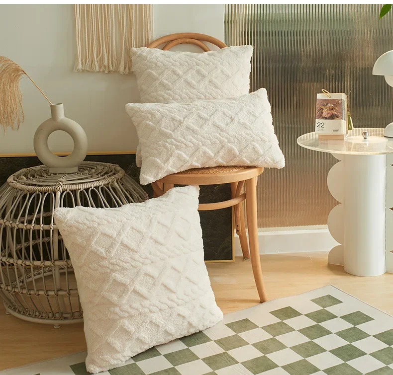 1pc 30x50cm Milk white Throw Pillow Covers Geometric Pattern Pillow Cushion Cushion Soft Plush Decor Case Pillow Shell for Sofa