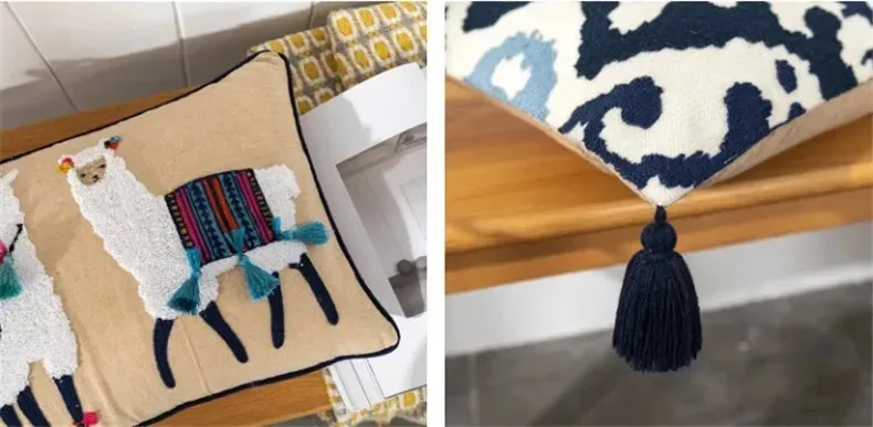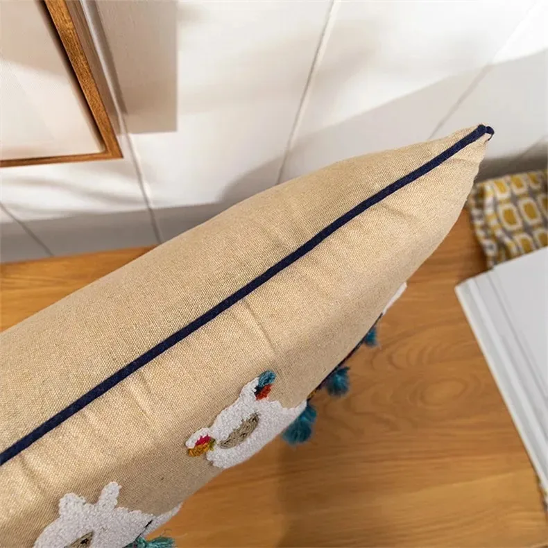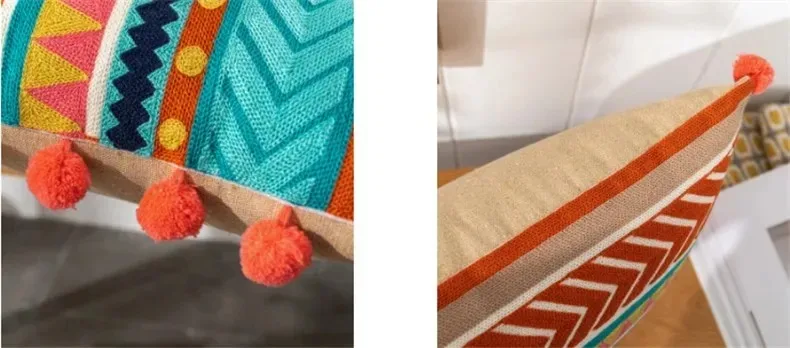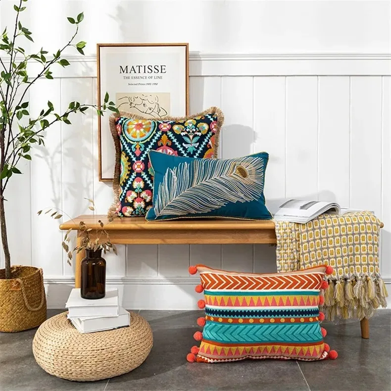 Bohemian Pillow Case Tufted Lumbar Pillow Covers Embroidered Geometric Floral Pompom Tassels Throw Cushion Cover Sofa Home Decor